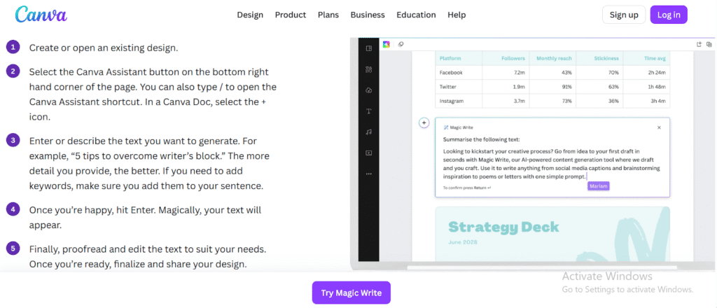 Now is the time to choose platforms designed specifically for education, which can use Canva’s Magic Write for visual assignments.