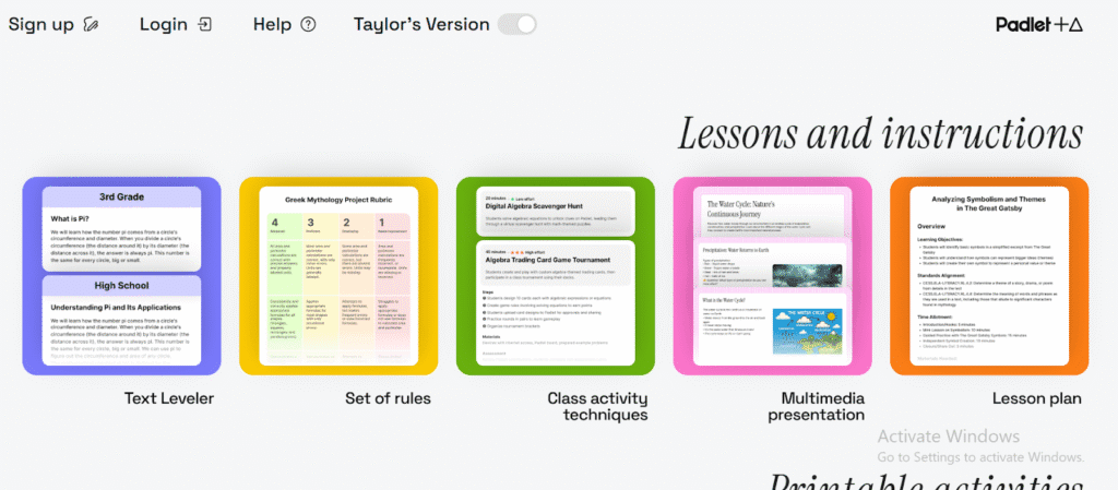 | Assessment and Feedback Tools | Padlet TA | Creating assessments and interactive activities | Generates rubrics, MCQs, worksheets, and sequencing tasks |